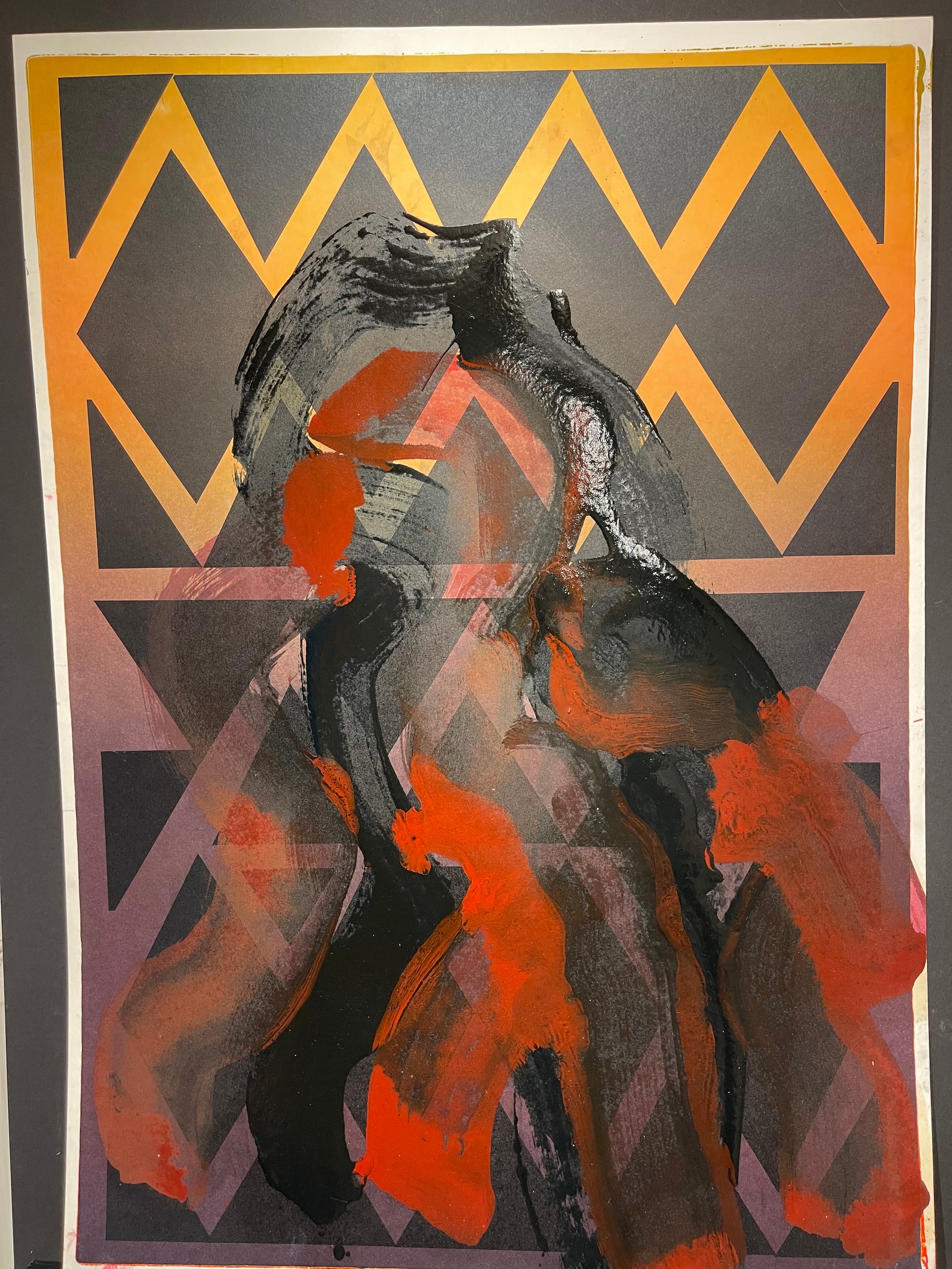 Olja original på grafiskt blad. Mått 90 x 64 cm, oinramad.